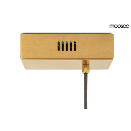Lampa wisząca WAND S od marki MOOSEE. Lampy z kolekcji Wand wykonane zostały z połączenia mosiądzu w kolorze złotym i aluminium w kolorze czarnym. Podłużny klosz o przekroju prostokąta, skrywa Ledow