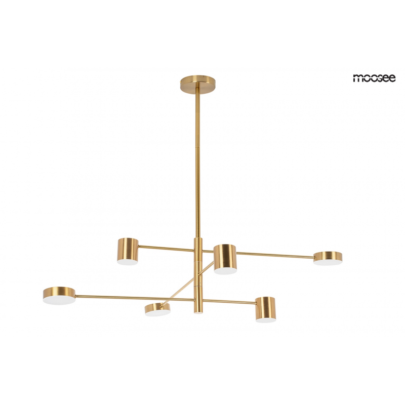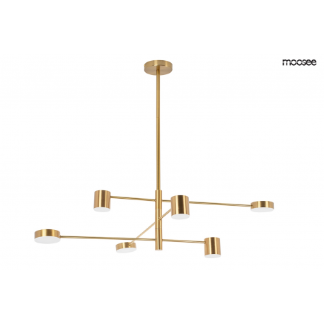 MOOSEE lampa wisząca PIAZETTA złota.Piazetta została wykonana ze stali w kolorze złotym. Naprzemienne rozmieszczenie kloszy o różnych rozmiarach i średnicach sprawia, że lampa oferuje ciepłe i rozproszone światło. Designerskie wzornictwo doskonale pasuje do nowoczesnych wnętrz.Światło: 6 x LED 6 W / 2900 lm / 3000 KOprawa: wys. 80 cm / szer. 100 cm / gł. 100 cmKlosze LED: wys. 3 cm / wys. 7,5 cm - śr. 10 cm / 6,5 cmRamie: dł. całkowita 75, 5 cmMocowanie: śr. 12 cm / wys. 2,5 cmMontaż: instalacja sufitowaWaga netto: 2 kgWymiary opakowania: 95 cm / 40 cm / 18 cm.