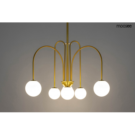 MOOSEE lampa wisząca NERI złota. Propozycja dla osób, które lubią nowoczesne i oryginalne rozwiązania. Oprawa kształtem przypomina fontannę dekoracyjną, a odpowiednio rozmieszczone klosze doskonale