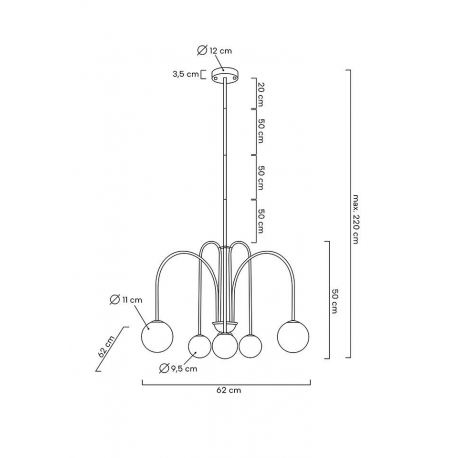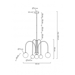 MOOSEE lampa wisząca NERI złota.Propozycja dla osób, które lubią nowoczesne i oryginalne rozwiązania.Oprawa kształtem przypomina fontannę dekoracyjną, a odpowiednio rozmieszczone klosze doskonale rozpraszają światło i oświetlają pomieszczenie.Konstrukcja została wykonana z metalu w kolorze złotym, a okrągłe, mleczne klosze ze szkła.Neri świetnie sprawdzi się we wnętrzach użytku publicznego, takich jak hotele czy restauracje.Wyjątkowo prezentować się będzie również w domowym zaciszu, nadając wyjątkowego klimatu.Światło: 6 x G9 max. 5 W (brak w zestawie)Wymiary: wys. 220 cm / szer. 62 cm / gł. 62 cmOprawa: wys. 50 cm / szer. 62 cm / gł. 62 cmKlosz: 1 x śr. 11 cm, 3 x 9,5 cmMocowanie: wys. 3,5 cm / śr. 12 cmRegulacja wysokości: 1 x 20 cm, 3 x 50 cmMontaż: instalacja sufitowaWaga netto: 3,5 kgWymiary opakowania: 67 cm / 47 cm / 30 cm.