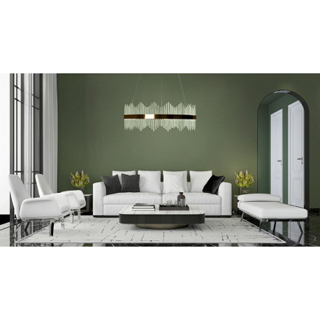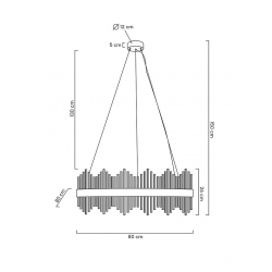 MOOSEE lampa wisząca FLORENS 80 złota.Ekskluzywna i elegancka oprawa, która z powodzeniem ozdobi wnętrza klasyczne i nowoczesne.Szklane, transparentne klosze zamontowano w dwurzędzie na metalowej obręczy, co wyraźnie oddaje efekt kryształu.Światło skierowane w górę i w dół zapewnia optymalne oświetlenie i niesamowity efekt wizualny.Światło: LED 46 W / 3680 lm / 3000 KOprawa: wys. 150 cm / szer. 80 cm / gł. 80 cmKlosz: wys. 26 cm / szer. 80 cm / gł. 80 cmZłoty element: wys. 4 cmPrzewód: 130 cmMocowanie: wys. 5 cm / śr. 12 cmMontaż: instalacja sufitowaWaga netto: 11 kgWymiary opakowania: 85 cm / 85 cm / 13 cm.