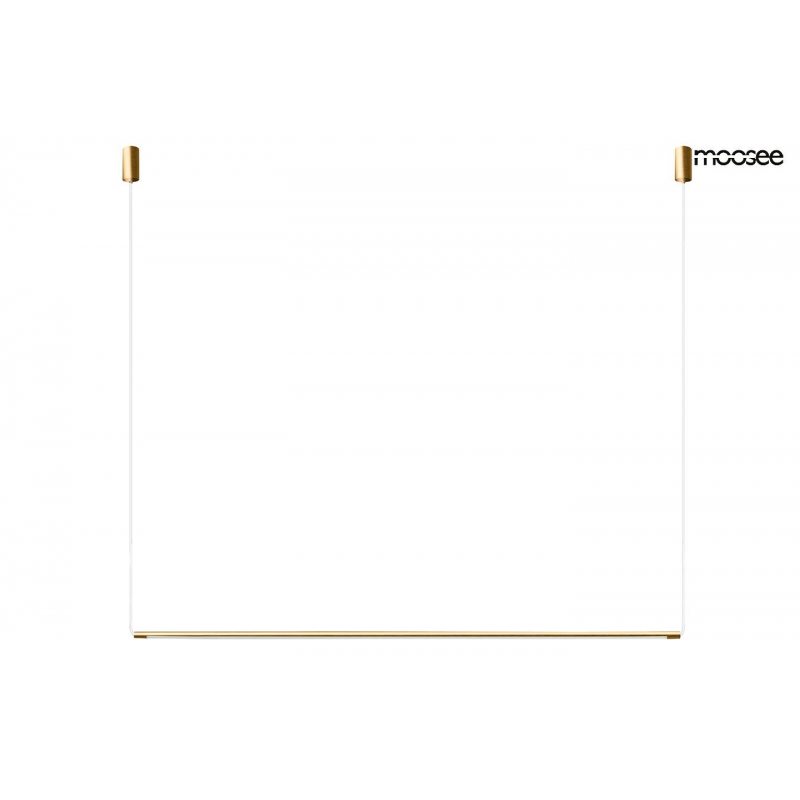 MOOSEE lampa wisząca OMBRE 100 złota. W całości wykonana ze stali kolorze złotym. Podłużny, akrylowy klosz skrywa ledowe źródło światła. Minimalistyczny kształt lampy doskonale odnajdzie się w nowoc