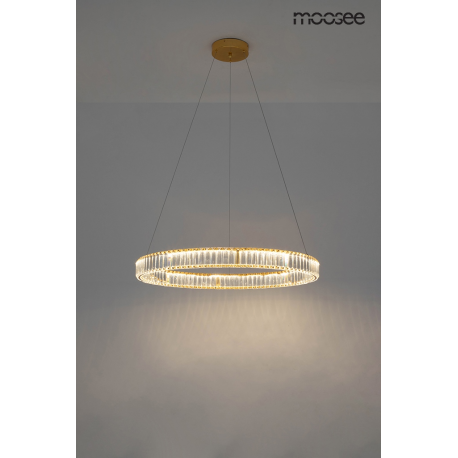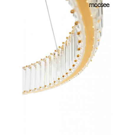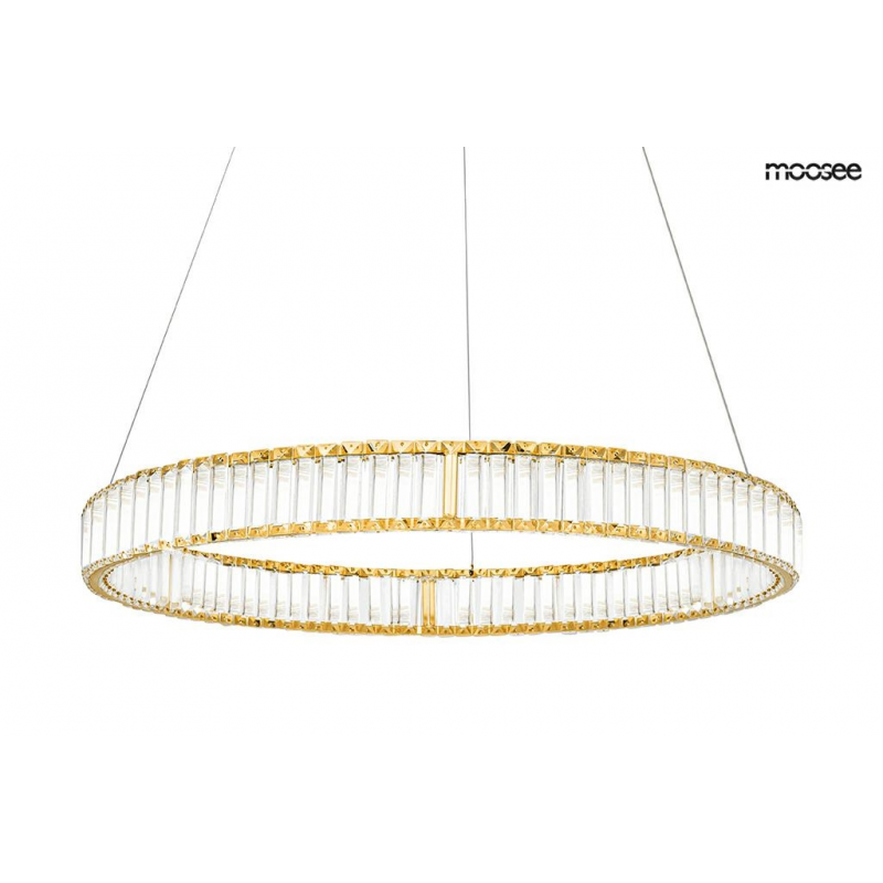 MOOSEE lampa wisząca LIBERTY 80 złota. Ekskluzywna i elegancka oprawa, która z powodzeniem ozdobi wnętrza klasyczne, nowoczesne oraz glamour. Kryształowe szkło zamocowane po obu stronach obręczy w n