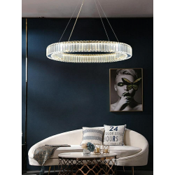 MOOSEE lampa wisząca LIBERTY 80 złota.Ekskluzywna i elegancka oprawa, która z powodzeniem ozdobi wnętrza klasyczne, nowoczesne oraz glamour.Kryształowe szkło zamocowane po obu stronach obręczy w niezwykły sposób rozprasza strumień światła.Złoty kolor delikatnie przebija przez kryształy, co tworzy wspaniały efekt dekoracyjny.Całość zawieszona na cienkich linkach z możliwością regulacji wysokości.Światło: LED 42 W / 3300 lm / 3000 KOprawa: wys. 257 cm / szer. 81,5 cm / gł. 81,5 cmKlosz: śr. 81,5 cm / wys. 8 cm / gr. 3 cmMocowanie: śr. 18 cm / wys. 4 cmDługość linki: 245 cmMontaż: instalacja sufitowa Waga netto: 8 kgWymiary opakowania: 89 cm / 89 cm / 5 cmSposób wysyłki: paleta.
