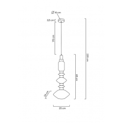 MOOSEE lampa wisząca VASO złota.Elegancka, nowoczesna oprawa wykonana w wyniku połączenia stali i szkła.Geometryczne klosze to nie tylko forma oświetlenia, to również doskonała forma dekoracji Twojego wnętrza.Vaso to wyjątkowa lampa o niecodziennej formie, która wbogaci wygląd Twojego salonu, sypialni czy innego pomieszczenia.Źródło światła: 1 x G9 max 5 W (brak w zestawie) + LED 5 W / 400 lm / 3000 KOprawa: wys. 235 cm / szer. 25 cm / gł. 25 cmKlosz: wys. 68 cm / sr. 25 cm Mocowanie: wys. 3,5 cm / śr. 10 cm Montaż: instalacja sufitowaPrzewód: 170 cm.