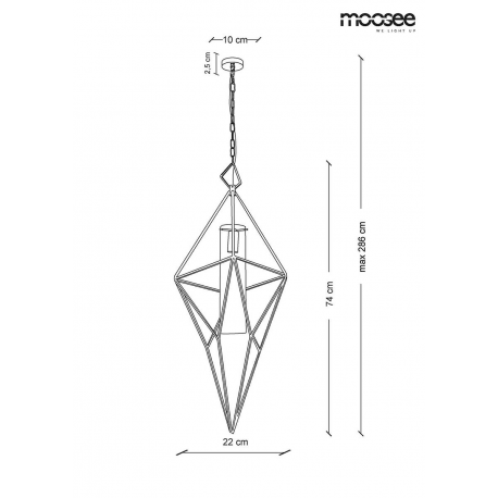 Lampa wisząca HAVANA L od marki MOOSEE.Geometryczną konstrukcję wykonano z połączenia metalu w kolorze złotym i szklanego klosza. Klosz otoczony jest geometrycznym stelażem.Całość została umieszczona na złotej podsufitce, eleganckim łańcuszku i transparentnym przewodzie.Lampy z kolekcji Havana tworzą elegancką kompozycję, która z powodzeniem rozświetli wnętrze salonu, kuchni lub hotelowego lobby. Światło: E14 max. 40 W (brak w zestawie)Oprawa: wys. 286 cm / szer. 22 cm / gł. 22 cmKlosz: wys. 74 cm / szer. 22 cmMocowanie: szer: 10 cm / wys. 2,5 cmMontaż: instalacja sufitowa Waga netto: 4 kgWymiary opakowania: 87,5 cm / 49,5 cm / 34 cm.