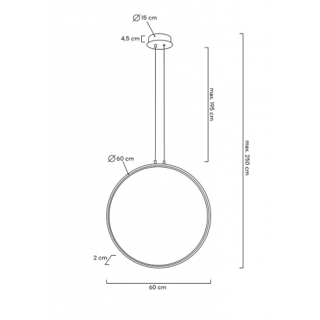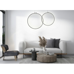 MOOSEE lampa wisząca CIRCULO 60 czarna.Minimalistyczna oprawa w kształcie okręgu została wykonana z metalu i aluminium w kolorze czarnym.Lekka konstrukcja z wbudowanym źródłem światła o ciepłej barwie, zwieszona na dwóch linkach stabilizujących lampę.Niezwykle proste, dekoracyjne oświetlenie sprawdzi się w zaciszu domowym, jak i w instytucjach publicznych.Światło: LED 34 W/ 2720 lm / 3000 KOprawa: wys. 250 cm / szer. 60 cm / gł. 15 cmKlosz LED: śr. 60 cm / gł. 2 cmPrzewód: 195 cmMocowanie: wys. 4,5 cm / śr. 15 cmMontaż: instalacja sufitowaWaga netto: 2,3 kgWymiary opakowania: 65 cm / 65 cm / 11 cm.