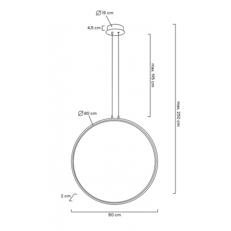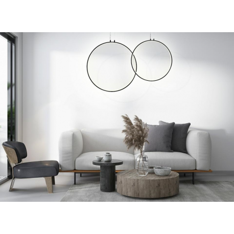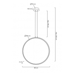 MOOSEE lampa wisząca CIRCULO 80 czarna.Minimalistyczna oprawa w kształcie okręgu została wykonana z metalu i aluminium w kolorze czarnym.Lekka konstrukcja z wbudowanym źródłem światła o ciepłej barwie, zwieszona na dwóch linkach stabilizujących lampę.Niezwykle proste, dekoracyjne oświetlenie sprawdzi się w zaciszu domowym, jak i w instytucjach publicznych.Światło: LED 43 W / 3440 W / 3000 KOprawa: wys. 250 cm / szer. 80 cm / gł. 15 cmKlosz LED: śr. 80 cm / gł. 2 cmPrzewód: 195 cmMocowanie: wys. 4,5 cm / śr. 15 cmMontaż: instalacja sufitowaWaga netto: 3,4 kgWymiary opakowania: 85 cm / 85 cm / 11 cm.