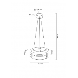 Saturnus to lampa jak wskazuje sama nazwa z innej galaktyki. Konstrukcja w kolorze złotym łącząca w sobie elementy szkła i metalu sprawia, że lampa nada wnętrzu wyjątkowego charakteru. Światło: LED 30 W / 2400 lm / 3000 KOOprawa: wys. 180 cm / szer. 47 cm / gł. 47 cmMontaż: instalacja sufitowaWaga netto: 8 kgWymiary opakowania: 70 cm / 56 cm / 8 cm.