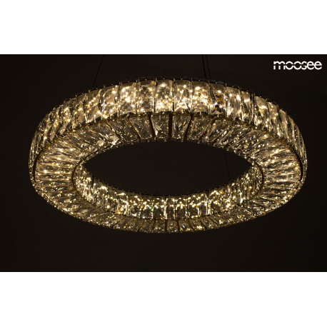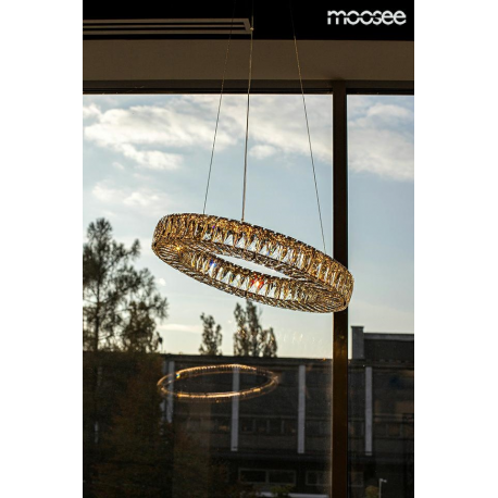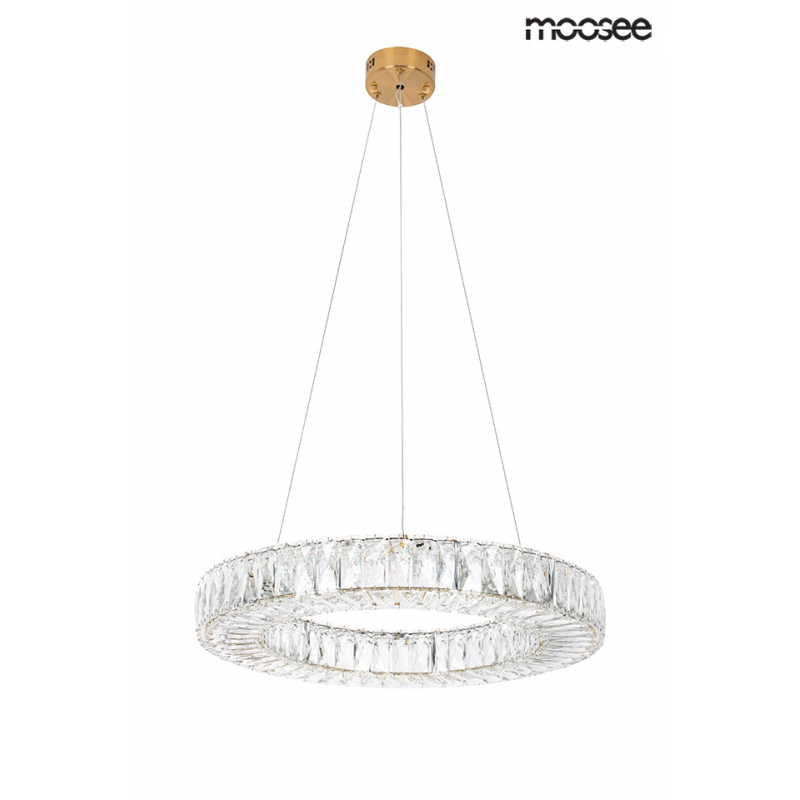 MOOSEE lampa wisząca ALLISIA 60 złota. Ekskluzywna i elegancka oprawa, która z powodzeniem ozdobi wnętrza klasyczne, nowoczesne oraz glamour. Kryształowe szkło zamocowane na obręczy w niezwykły spos