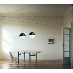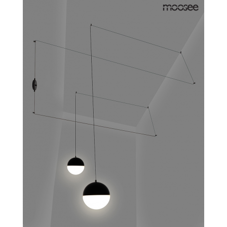 MOOSEE lampa ścienna BOWL DUO czarna.Minimalistyczna, a zarazem oryginalna oprawa składająca się z dwóch szklanych kloszy, długiego przewodu i metalowej montatury. Dzięki zastosowaniu 5-metrowego kabla w każdym z kloszy można zamontować lampę w kreatywny sposób, przeprowadzając przewód na przemian, tworząc geometryczne kształty.Światło: 2 x E27 max 60 W (brak w zestawie)Oprawa: wys. 520 cm / szer. 1000 cm / gł. 20 cmKlosz: śr. 20 cmMocowanie: śr. 10 cm / gł. 4 cmElement mocowania linki do sufitu: wys. 2,5 cm / śr. 1 cm (6 szt. w zestawie)Przewód: 5 mMontaż: instalacja sufitowa / ściennaWaga netto: 1,5 kgWymiary opakowania: 50 cm / 30 cm / 30 cm.*W kloszach mogą wystąpić pęcherzyki powietrza, które są naturalnym efektem powstałym podczas ręcznej obróbki szkła.