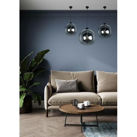 MOOSEE lampa wisząca SANDRA 30 czarna.Okrągły klosz całkowicie wykonano z transparentnego szkła.Wewnątrz klosza na stelażu z czarnego metalu zawieszone jest źródło światła.Lampa jest przeznaczona do przestrzeni nowoczesnych, jak i loftowych, czy industrialnych.W kloszu mogą pojawić się pęcherzyki powietrza, które są naturalnym efektem powstałym podczas ręcznej obróbki szkła.Światło: 1 x E27 max. 60 W (brak w zestawie)Wymiary: wys. 210 cm / szer. 30 cm / gł. 30 cmKlosz: śr.: 30 cmCzarny element na żarówkę : wys. 12 cm / sr. 5 cmMocowanie: wys. 6 cm / śr. 10 cmPrzewód: 210 cmMontaż: instalacja sufitowaWaga netto: 3 kgWymiary opakowania: 43 cm / 43 cm / 53 cm.