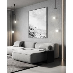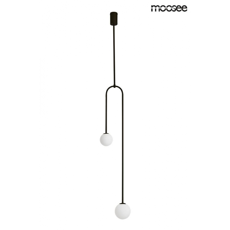 MOOSEE lampa wisząca LOW czarna.Elegancka lampa zbudowana z kulistych, szklanych, mlecznych kloszy umieszczonych na metalowej konstrukcji w kolorze czarnym.Pasuje do klasycznych oraz bardziej nowoczesnych wnętrz, dodając im szyku i przytulnego blasku.Lampa Low doskonale sprawdzi się w pomieszczeniach domowych oraz restauracyjno-hotelowych.Światło: 2 x G9 max. 40 W (brak w zestawie)Oprawa: wys. 133 cm / szer. 25 cm / gł. 13 cmKlosz: 1 x śr. 9 cm / 1 x śr. 12 cmMocowanie: wys. 10 cm / szer. 7 cmMontaż: instalacja sufitowaWaga netto: 1,5 kgWymiary opakowania: 71 cm / 25 cm / 21 cm.
