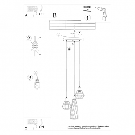 Źródło światła: E27, 3x max 15 W LED, 50Hz, ~230V, IP20, klasa ochronności I