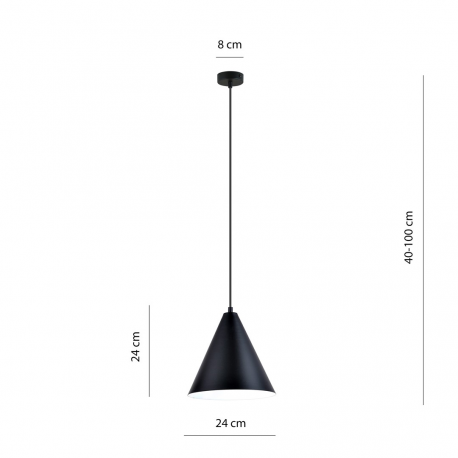 Lampa wisząca REBEL Zaakcentuj swoje wnętrze niepowtarzalnym stylem industrialnym dzięki lampie wiszącej z serii REBEL. Wykonana z trwałej stali, lampa charakteryzuje się minimalistyczną formą. Czarny stożkowy klosz z białym wnętrzem nie tylko dodaje charakteru, ale także optymalizuje rozpraszanie światła, zapewniając przyjemne, ciepłe oświetlenie. Idealne dopełnienie dla nowoczesnych przestrzeni o surowym charakterze.
