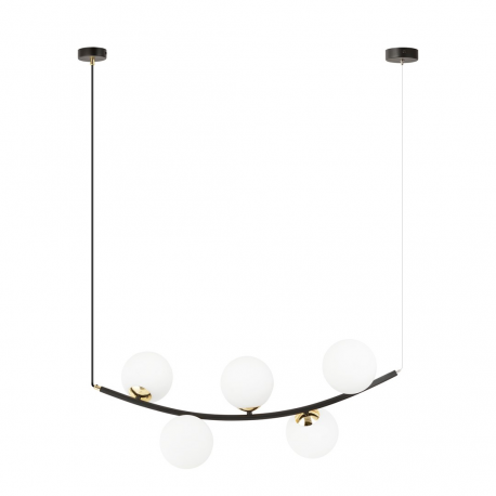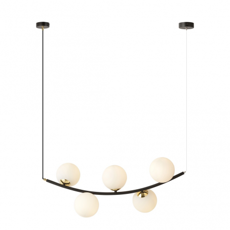 Wprowadź prostotę minimalistycznego designu do swojego wnętrza z lampą wiszącą RITZ. Wykonana ze stali w kolorze czarnym, doskonale współgra z białym, opalowym kloszem. Lampa w kształcie półkola z nieregularnym rozstawieniem kloszy nadaje wnętrzu wyjątkowego charakteru, podkreślając jej nowoczesny i wytworny styl. Ta lampa to doskonały wybór dla tych, którzy pragną dodać swojemu wnętrzu subtelnej elegancji, tworząc oświetlenie, które zachwyci swoim wyglądem i funkcjonalnością. Wyprodukowano w Polsce.
