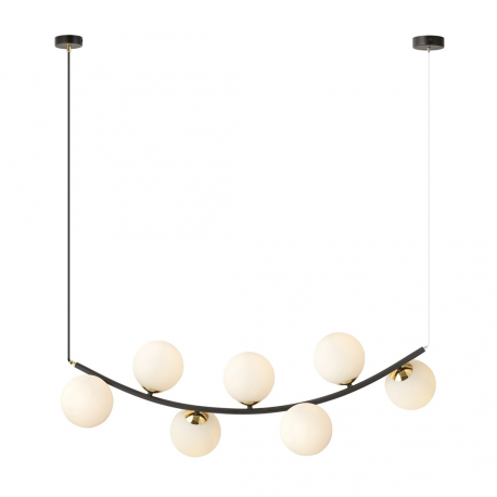 Wprowadź prostotę minimalistycznego designu do swojego wnętrza z lampą wiszącą RITZ. Wykonana ze stali w kolorze czarnym, doskonale współgra z białym, opalowym kloszem. Lampa w kształcie półkola z nieregularnym rozstawieniem kloszy nadaje wnętrzu wyjątkowego charakteru, podkreślając jej nowoczesny i wytworny styl. Ta lampa to doskonały wybór dla tych, którzy pragną dodać swojemu wnętrzu subtelnej elegancji, tworząc oświetlenie, które zachwyci swoim wyglądem i funkcjonalnością. Wyprodukowano w Polsce.