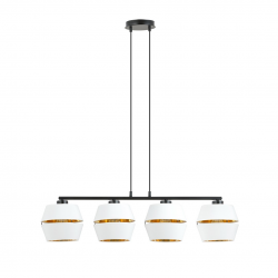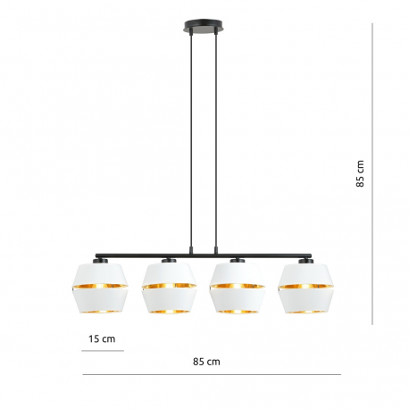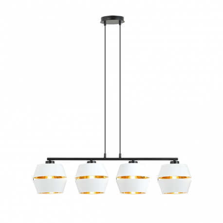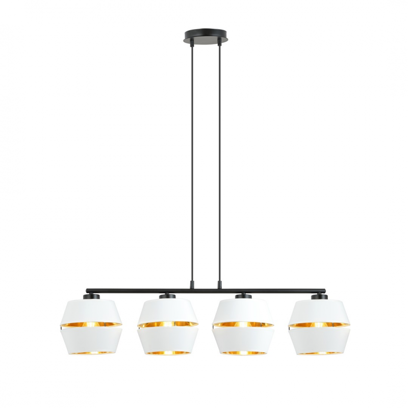 Lampa PIANO to połączenie ponadczasowej elegancji z nowoczesnym designem. Jej oryginalne abażury ze złotym wnętrzem nadają pomieszczeniom wyjątkowego charakteru. Tworzy magiczną, nastrojową atmosferę, emanującą zmysłowym ciepłem. Prosta konstrukcja i elegancka kolorystyka zapewniają idealną harmonię pomiędzy praktycznością, a wytwornością. Model dostępny w wersji czarno-złotej lub biało-złotej, na 1, 3 lub 4 źródła światła. To produkt w 100% polski wykonany z dbałością o każdy detal.