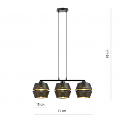 Lampa MALIA to połączenie ponadczasowej elegancji z nowoczesnym designem. Jej oryginalne abażury ze złotym wnętrzem nadają pomieszczeniom wyjątkowego charakteru. Tworzy magiczną, nastrojową atmosferę, emanującą zmysłowym ciepłem. Prosta konstrukcja i elegancka kolorystyka zapewniają idealną harmonię pomiędzy praktycznością, a wytwornością. Model dostępny w wersji czarno-złotej lub biało-złotej, na 1, 3 lub 4 źródła światła. To produkt w 100% polski wykonany z dbałością o każdy detal.