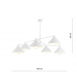 Seria lamp MAVERICK to doskonałe połączenie piękna i minimalizmu. Te ultranowoczesne lampy inspirowane stylem loftu doskonale sprawdzą się w minimalistycznych, industrialnych wnętrzach. Ich jednolita kolorystyka podkreśla ponadczasową prostotę i uniwersalność, a rozłożysta konstrukcja z metalowymi kloszami o nietypowym kształcie nadaje im niepowtarzalny charakter i designerski wygląd. Seria MAVERICK wyróżnia się swoją prostotą, jednocześnie zachwycając obfitością. Lampy te są idealne do oświetlenia stołu lub kuchennej wyspy. W każdym pomieszczeniu będą stanowić fascynujący element dekoracyjny, który wzbudzi zachwyt. Dostępne w wersji białej lub czarnej, na 2, 4 lub 6 punktów świetlnych. Produkt w 100% polski.