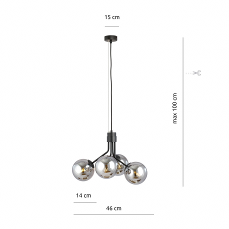 1140/4 - Lampa wisząca NOVA 4 BLACK/GRAFIT - EMIBIG