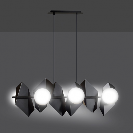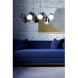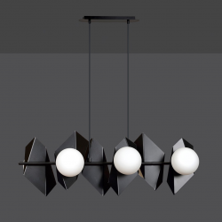 DRIFTON to nowoczesna lampa wisząca o bardzo oryginalnej formie. Jej geometryczna metalowa konstrukcja przyciąga uwagę i stanowi wyjątkowe rozwiązanie dla osób poszukujących ciekawych elementów dekoracyjnych do swojego wnętrza. Ożywia przestrzeń i nadaje jej charakteru, jednocześnie pięknie doświetlając pomieszczenie. Dostępna w wersji czarnej lub białej, na 4 lub 6 źródeł światła. Produkt polski o doskonałej jakości wykonania.