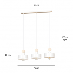 Lampy TUNISO to minimalistyczna seria lamp sufitowych o prostej formie i stylowym designie. Model, który wpisze się idealnie w niemalże każdy wystrój wnętrza. Swoim wyglądem nawiązuje do bardzo modnego tylu skandynawskiego. Lampy TUNISO posiadają otwarte metalowe klosze, dzięki którym lampa jest w stanie doskonale oświetlić nawet duże pomieszczenie. Drewniane dodatki są bardzo miłe dla oka i przykuwają uwagę. Dostępna w dwóch kolorach: czarnym i białym. Wykonane z materiałów najwyższej jakości. Produkt w 100% polski.