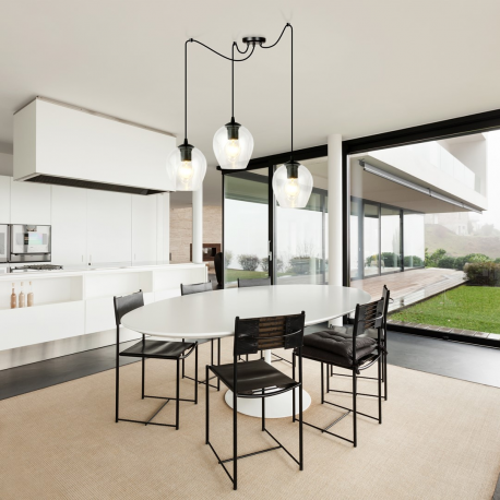 LEVEL to lampa sufitowa typu pająk, dzięki długim przewodom daje wiele możliwości aranżacyjnych. Jest idealna do wysokich loftowych pomieszczeń, wspaniale podkreśla ich nowoczesny charakter, jednocześnie zapewniając piękne doświetlenie. Szklane klosze dodają lampie lekkości i wdzięku, a jej rozłożysta konstrukcja jest niezwykle oryginalna w swej prostocie. Seria LEVEL doskonale sprawdzi się również w bardziej tradycyjnych wnętrzach. Produkt polski wykonany z materiałów najwyższej jakości. Dostępna w wersji na 1, 3 lub 5 źródeł światła. Do wyboru kilka kolorów kloszy.