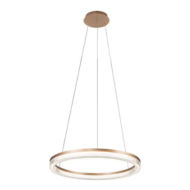 Lampa wisząca Midway Cristal Triangle ma kształt obręczy wykonanej z połączenia złotego metalu i transparentnego akrylu. W metalowym elemencie wbudowane jest źródło światła LED, natomiast element akrylowy pełni rolę dyfuzora, który pięknie rozprasza i zmiękcza światło. Dzięki takiej konstrukcji, światło emitowane przez lampę jest bardzo przyjemne i nastrojowe. Lampa będzie pięknie oświetlać takie przestrzenie jak sypialnia, salon, czy jadalnia. Transparentno - złote zestawienie oraz proste wzornictwo sprawiają, że lampa będzie się pięknie komponowała z wnętrzami w stylu modern classic.
