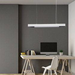 Lampa Cali M LED CCT łączy nowoczesny design z zaawansowaną technologią. Wykonana z trwałego, białego aluminium, ma kształt podłużnego prostopadłościanu, który łączy miniaturowe reflektorki z gładką akrylową blendą. Dzięki temu lampa pełni funkcję nie tylko źródła światła, ale także atrakcyjnego elementu dekoracyjnego. Zawieszona na regulowanych linkach o maksymalnej długości 120 cm, pozwala na dostosowanie wysokości do indywidualnych potrzeb. Technologia LED CCT umożliwia regulację barwy światła, dzięki czemu można dostosować oświetlenie do każdej sytuacji i nastroju. Lampa obsługiwana jest za pomocą aplikacji Tuya Smart, co pozwala na łatwe i wygodne zarządzanie oświetleniem z dowolnego miejsca w domu. Posiada klasę ochronności IP20, co zapewnia ochronę przed przedostawaniem się obiektów o średnicy co najmniej 12 mm do wnętrza lampy. Cali M LED CCT to idealne rozwiązanie dla osób ceniących nowoczesne technologie i prosty, elegancki design. Cali LED CCT to idealne rozwiązanie zarówno do przestrzeni domowych, jak i komercyjnych.