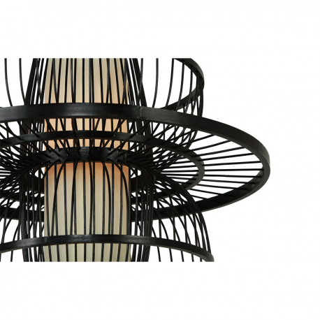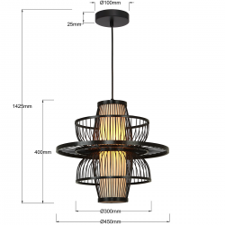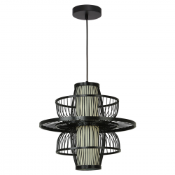 Ta elegancka lampa wykonana z czarnego rattanu wyróżnia się oryginalnym designem, który łączy subtelność naturalnych materiałów z nowoczesnym stylem. Jej unikalny, wielowarstwowy kształt nawiązuje do form geometrycznych, co nadaje jej lekkości i charakteru. Podsufitka wykonana z czarnego metalu doskonale harmonizuje z całością, zapewniając trwałość i estetykę.