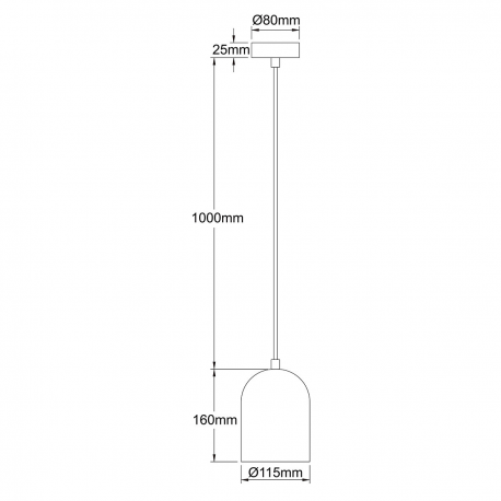 Wymiary: Lampa posiada długość 118,5 cm. Średnica klosza wynosi 11,5 cm, natomiast jego wysokość 16 cm.