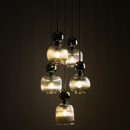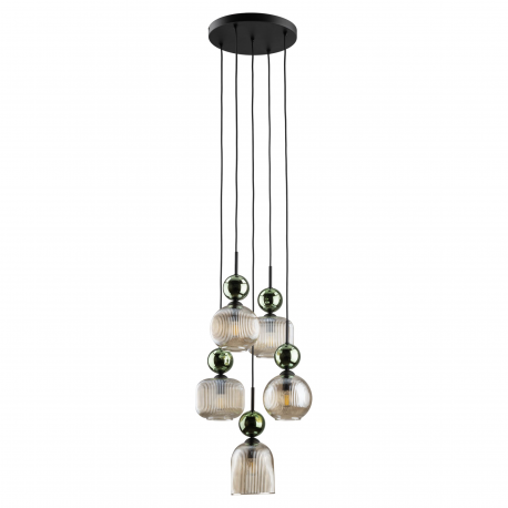 Rodzina lamp SOPHIA to wyjątkowe połączenie subtelnej formy, elegancji i funkcjonalności. Inspirowana ponadczasowym stylem glamour, zachwyca harmonijnym zestawieniem materiałów – ryflowanego szkła w różnych wykończeniach kolorystycznych (mlecznobiałym, koniakowym, zielonym), delikatnych złotych akcentów oraz smukłych, czarnych detali. To oświetlenie stworzone dla tych, którzy cenią wyrafinowany design i przytulną atmosferę. Rzeźbiarska forma ryflowanego klosza subtelnie rozprasza światło, tworząc przyjemny, nastrojowy blask, a kulisty element w wykończeniu złotym lub barwnym dodaje lampie lekkości i szyku, czyniąc ją nie tylko źródłem światła, ale i dekoracyjnym akcentem wnętrza. Rodzina SOPHIA obejmuje zarówno pojedyncze lampy wiszące, kinkiety, jak i efektowne kompozycje wielopunktowe, które doskonale sprawdzą się nad stołem w jadalni, w salonie, sypialni czy eleganckich przestrzeniach komercyjnych.