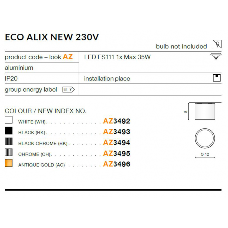 ECO ALIX NEW 230V OPRAWA NATYNKOWA AZ3496 AZZARDO