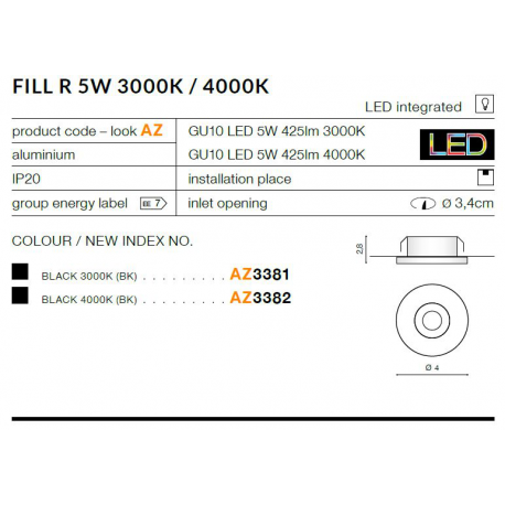 FILL R 5W 3000k OPRAWA WPUSZCZANA AZ3381 AZZARDO