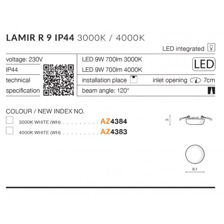 LAMIR 4000k R9 LAMPA WPUSZCZANA IP44 AZZARDO AZ4383