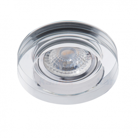 Okrągła oprawa na pojedyncze źródło światła w kolorze srebrnym charakteryzuje się eleganckim wyglądem, a jej podwyższona, szklana obudowa stanowić będzie ciekawy i oryginalny element wyposażenia nowoczesnych wnętrz.