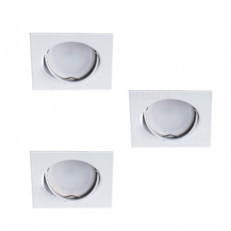 Kanlux TRIBIS II to kompletny zestaw 3 sztuk oczek, który składa się z:  3x pierścieni dekoracyjnych, 3x źródeł światła (TOMIv2 GU10) i 3x oprawek ceramicznych ze wspornikiem. Do wyboru mamy dwa kształty (kwadratowy i okrągły) i kilka wariantów kolorystycznych. Oczka Kanlux TRIBIS II posiadają możliwość regulacjo kątowej o 50º dlatego swobodnie skierujemy je w pożądanym kierunku. Oprawy punktowe Kanlux TRIBIS II przeznaczone do wbudowania w sufit, świetnie sprawdzają się jako oświetlenie główne lub pomocnicze. Możesz umieścić je w grupie lub rozdzielić pomiędzy kilka miejsc.