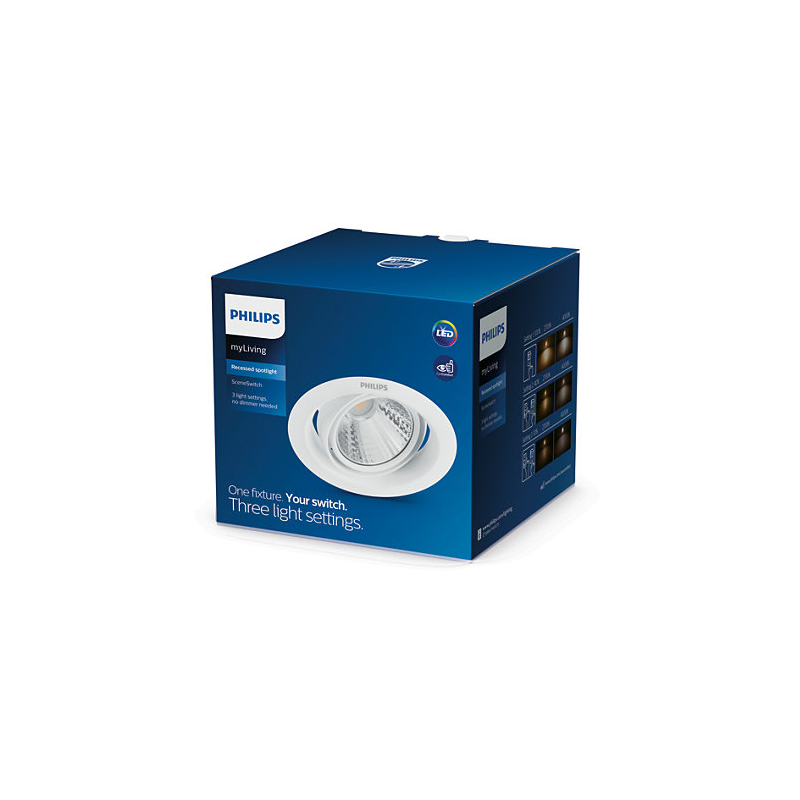 Stwórz odpowiedni nastrój, zmieniając jasność światła i dopasowując do wykonywanej czynności. Dzięki lampom sufitowym Philips SceneSwitch możesz ustawić jeden z trzech poziomów jasności. Produkt nie wymaga posiadania ściemniacza ani żadnej dodatkowej instalacji — wystarczy istniejący włącznik światła