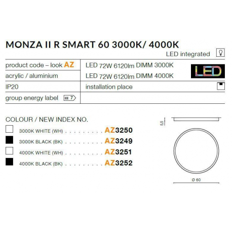 MONZA II R SMART 60 4000K AZ3252 PLAFON AZZARDO