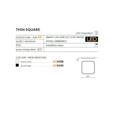 THIN SQUARE SMART AZ3429 PLAFON sterowany aplikacją AZZARDO