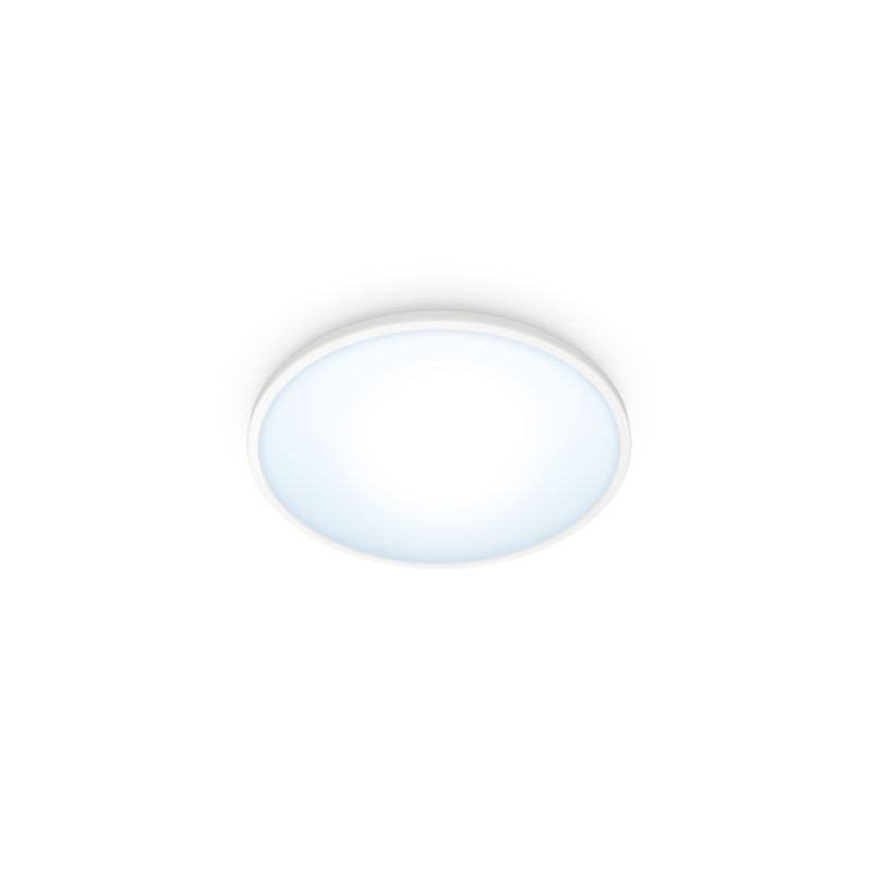 Dzięki inteligentnej lampie sufitowej WiZ Super Slim rozświetlisz pomieszczenia w swoim domu ciepłym lub chłodnym białym światłem. Za pomocą aplikacji WiZ lub przy użyciu poleceń głosowych możesz przyciemniać i rozjaśniać światło lub korzystać z zaprogramowanych trybów oświetlenia w instalacjach Wi-Fi.
