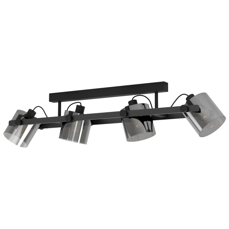 Lampa sufitowa w stylu Vintage serii HORNWOOD 2. Cztery czarno-transparentne klosze wykonane z napowietrzanego szkła delikatnie przepuszczają światło