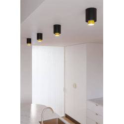 NESI to przewrotne połączenie regularnej formy z zaskakującym kolorem. Króluje tu prosty kształt walca, który przełamuje intensywna złota barwa mniejszego klosza