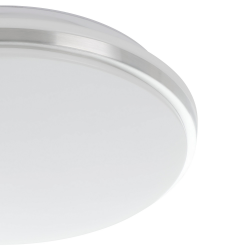 Lampa sufitowa LED PINETTO składa się z okrągłej, białej plastikowej osłony połączonej z chromowaną plastikową ramą. Dzięki ochronie przed wodą rozpryskową (IP44) bez wahania można go używać w łazience. Zintegrowane diody LED emitują jasne, neutralne białe światło. Ponadczasowa lampa sufitowa o średnicy 34 cm pasuje do niemal każdego wnętrza i nadaje się do każdej przestrzeni życiowej, która wymaga dobrego oświetlenia - na przykład w łazience, kuchni czy przedpokoju.