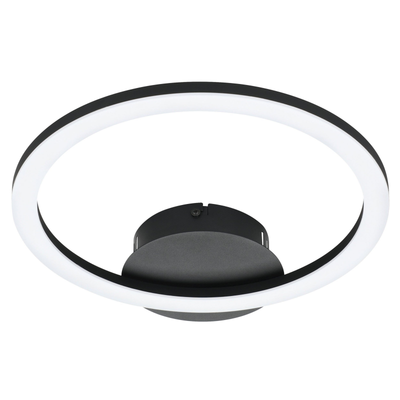 Lampa sufitowa LED PARRAPOS-Z z serii smart home connect.Z jest wykonana z czarnego, okrągłego profilu LED, który jest zamocowany pośrodku okrągłej, czarnej metalowej podstawy. Zintegrowane diody LED za białą plastikową powierzchnią świetlną zapewniają przyjemne światło zgodnie z Twoimi życzeniami. Masz wybór między ciepłą bielą, neutralną bielą i zimną bielą światła. Jest sterowany za pomocą bezpłatnej aplikacji (AwoX Home Control) i zapewnia dostęp do innych funkcji zapewniających komfort, takich jak ściemnianie, timer, symulacja obecności i wiele innych. Światło jest sterowane przez Bluetooth i ZigBee 3.0, a także umożliwia sterowanie za pomocą kompatybilnych asystentów językowych. Ponadto inteligentną lampą sufitową można sterować za pomocą dostępnego oddzielnie pilota.