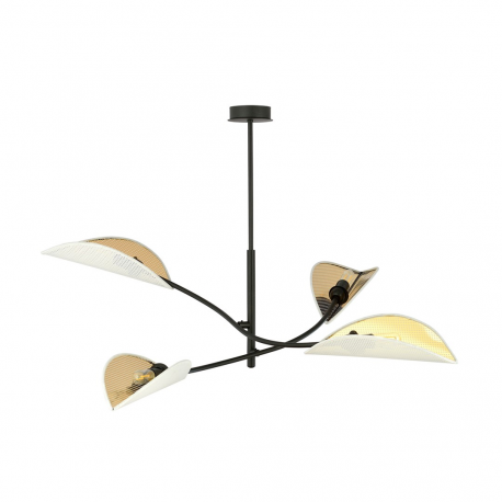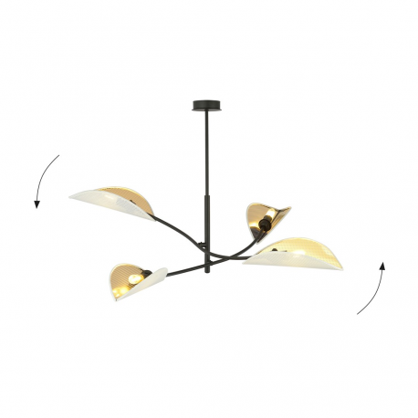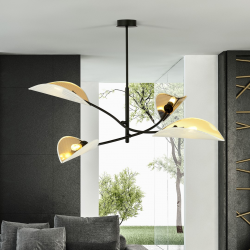 Lampa sufitowa LOTUS zachwyca lekkością i subtelnością. Idealnie wpasuje się w gusta klientów, ceniących sobie wyjątkowe materiały i oryginalny design w stylu etno. Wyjątkowe bażury w kształcie liści dodają lampie niezwykłej delikatności. Lampa sufitowa LOTUS doskonale ociepli wnętrze Twojego domu, tworząc przytulną atmosferę. Najlepiej prezentuje się w salonie lub sypialni i z pewnością przykuje uwagę wszystkich gości. Otwarte abażury doskonale oświetlą pomieszczenie, tworząc niepowtarzalny klimat. Wykonana z najwyższej jakości materiałów. Produkt w 100% polski. Dostępna w wersji na 2, 4 lub 6 źródeł światła. Abażury czarno-złote, biało-złote lub rattanowe.