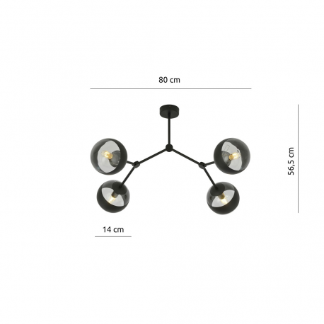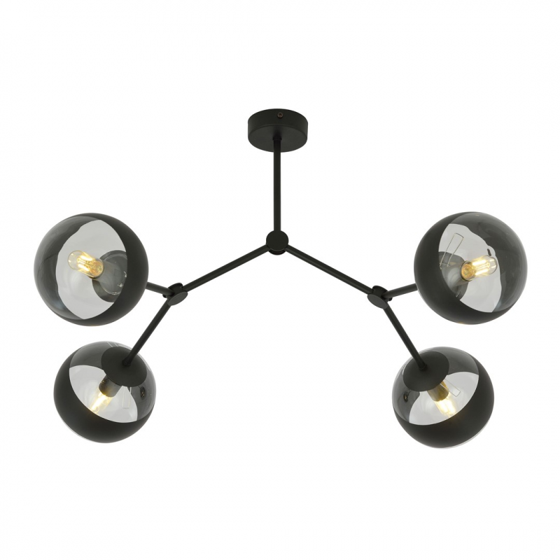 SPACE - ta lampa sufitowa idealnie wpisuje się w minimalistyczne trendy, ale jednocześnie zachwyca swoją oryginalną formą i unikalnym designem. Dodaje przestrzeni niepowtarzalnego charakteru i tworzy wyjątkowy klimat. Doskonale pasuje zarówno do salonu, sypialni, jak i kuchni nad wyspą lub stołem jadalnianym. Klasyczne barwy - elegancka czerń i ponadczasowe mleczne szkło - dają wiele możliwości aranżacyjnych i doskonale komponują się zarówno z wnętrzami nowoczesnymi, jak i tradycyjnymi. Niezwykła konstrukcja lampy przyciąga uwagę, a rozproszone w różnych kierunkach klosze skutecznie oświetlają całe pomieszczenie. To nasz bestseller! Wykonana z wysokiej jakości materiałów. Dostępne kolory kloszy to grafit, miodowy, transparentny oraz stripe (transparentny z czarnym pasem). To produkt w 100% polski.