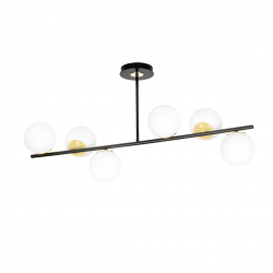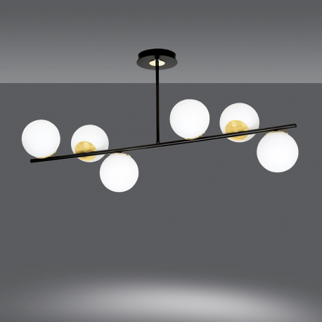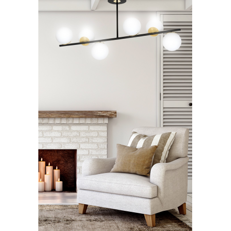 Plafony sufitowe FLOKI to doskonałe uzupełnienie zarówno nowoczesnych, jak i klasycznych wnętrz. Najbardziej efektownie prezentują się zawieszone nad stołem lub wyspą, nadając pomieszczeniu niepowtarzalny nastrój. Delikatny, mleczny klosz dodaje serii FLOKI lekkości, a złote elementy elegancji i szyku. Minimalistyczna forma lampy FLOKI doskonale oświetli nawet duże powierzchnie i idealnie wpisze się w większość aranżacji domowych. Seria wykonana jest z materiałów najwyższej jakości. Dostępne są w kolorze czarnym lub białym, na 4 lub 6 źródeł światła.
