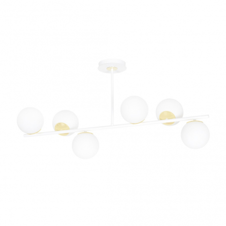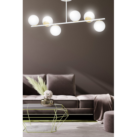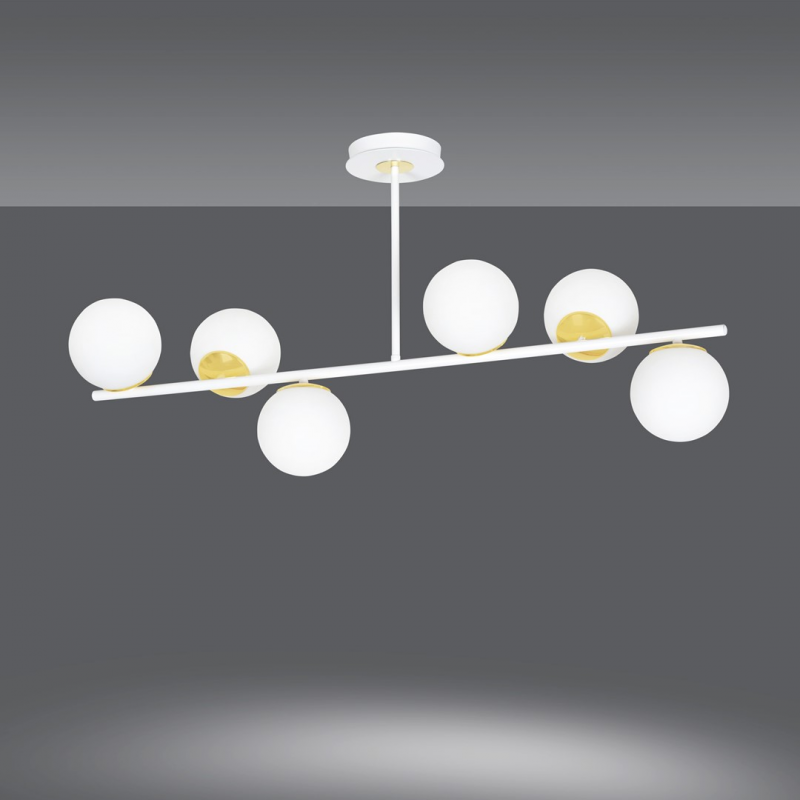 Plafony sufitowe FLOKI to doskonałe uzupełnienie zarówno nowoczesnych, jak i klasycznych wnętrz. Najbardziej efektownie prezentują się zawieszone nad stołem lub wyspą, nadając pomieszczeniu niepowtarzalny nastrój. Delikatny, mleczny klosz dodaje serii FLOKI lekkości, a złote elementy elegancji i szyku. Minimalistyczna forma lampy FLOKI doskonale oświetli nawet duże powierzchnie i idealnie wpisze się w większość aranżacji domowych. Seria wykonana jest z materiałów najwyższej jakości. Dostępne są w kolorze czarnym lub białym, na 4 lub 6 źródeł światła.